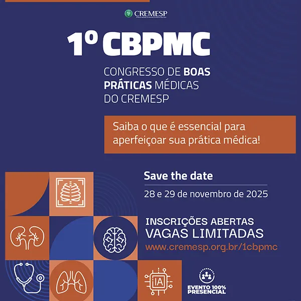 Nos dias 28 e 29 de novembro, o Cremesp realiza o 1º Congresso de Boas Práticas Médicas – um evento inédito, feito especialmente para você que está na linha de frente do atendimento médico.